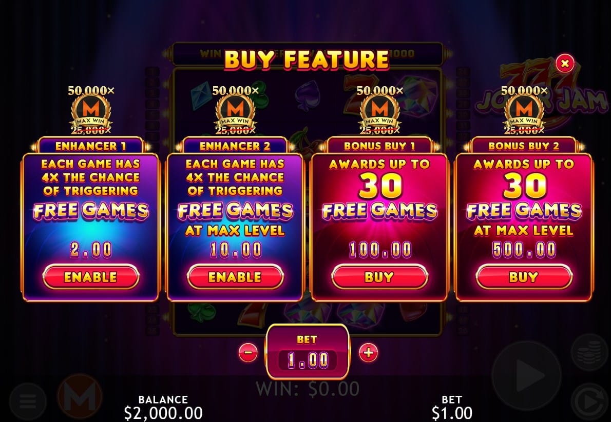 Players can bypass RNG triggers via Bonus Buy options, accessed through an “M” button, tailored to varying risk appetites. These are detailed in the following table: