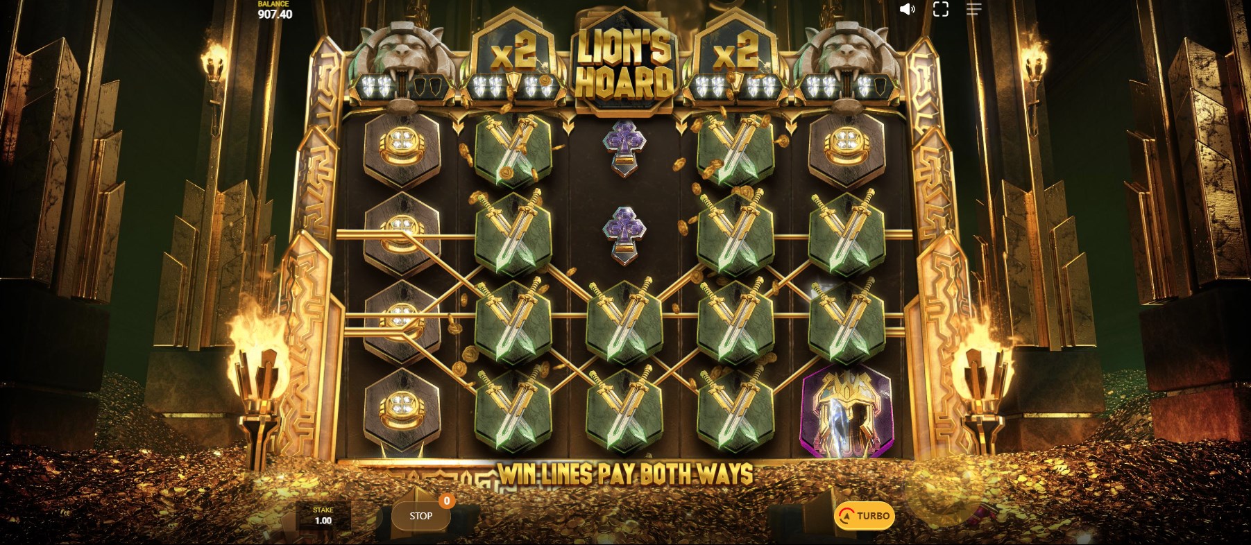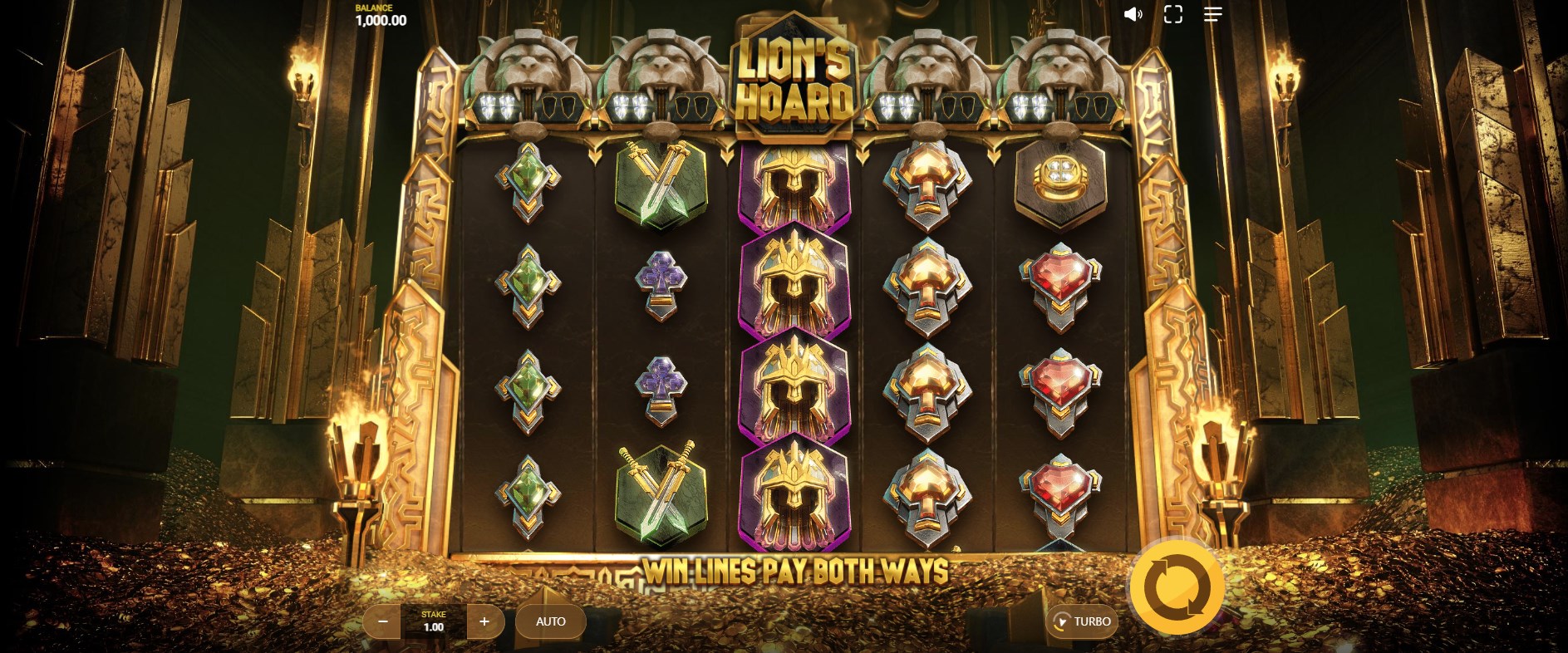 True to the theme, the audio in Lion’s Hoard is rich and resonant, with dramatic orchestral tones, shimmering sound effects, and a sense of grandeur throughout. There’s a weight to the sound design—every spin and symbol drop has a dense, satisfying tone that enhances the opulent atmosphere.