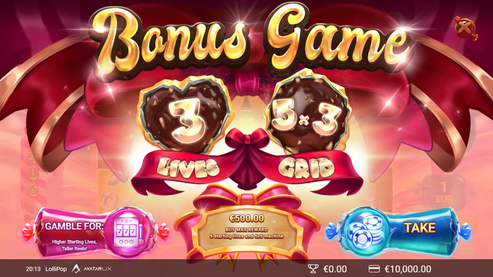 Set in a whimsical, candy-coated world, LolliPop embraces a bright and colorful theme that is much more mainstream than the edgy or experimental styles seen in other AvatarUX slots. The grid starts at 5×3 with 486 ways to win, and through expansions, it can grow to 33,614 paylines. The RTP is set at 95.82%, with high volatility and a maximum payout of 13,000x the bet. Bets range from €0.20 to €100 per spin, appealing to casual and serious players alike.