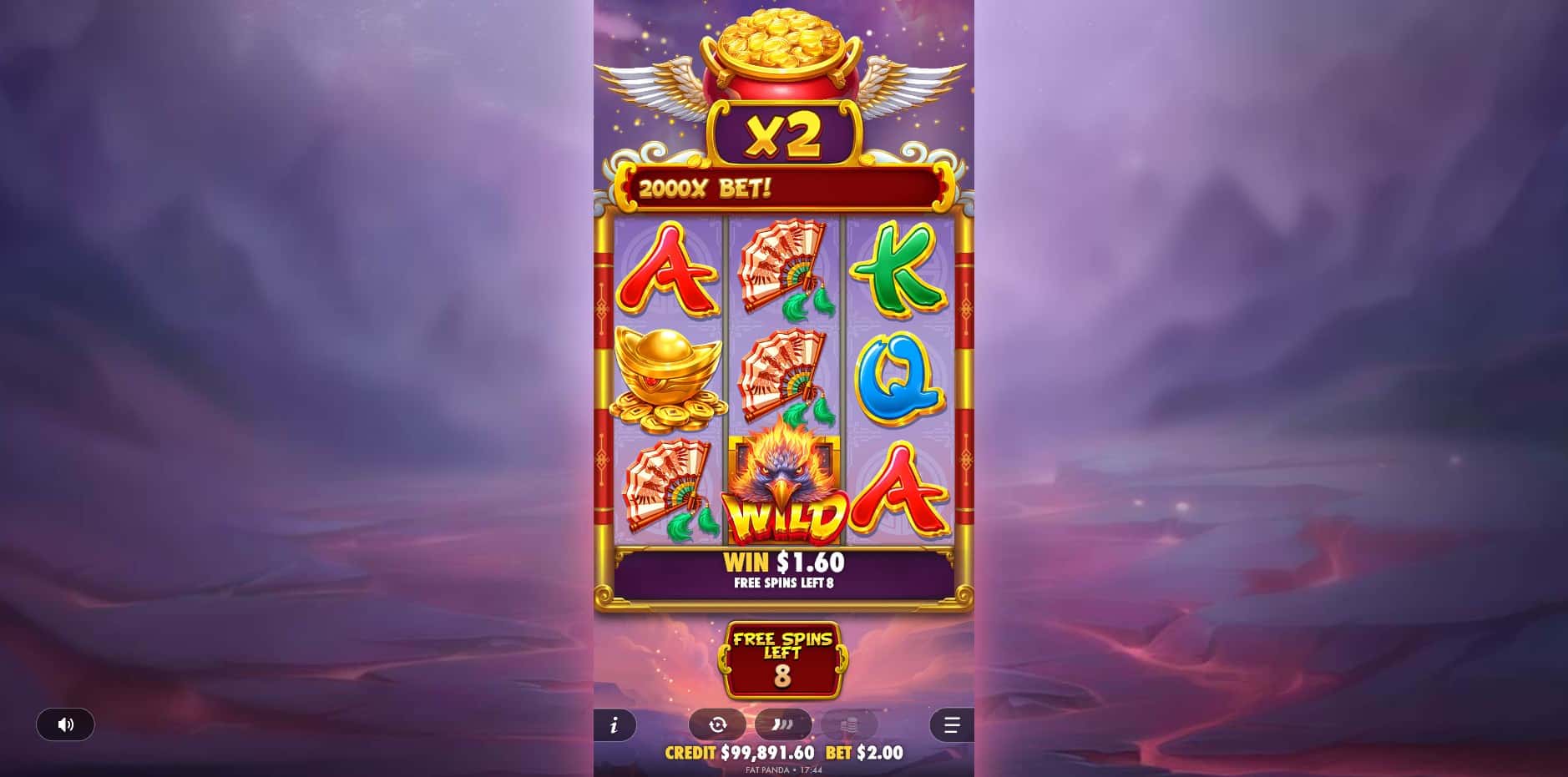 Lucky Phoenix keeps features minimal yet potent, centering on Wild Symbols and Free Spins. Wilds not only substitute for all pay symbols but also carry a lucrative standalone payout of 50x the bet for three landing simultaneously. Each Wild appearance in the base game has a random chance to trigger Free Spins, awarding 10 initial spins. The standout mechanic is the Total Win Multiplier displayed above the reels, starting at 1x on the first spin and incrementing by +1x per subsequent spin (e.g., 2x on spin 2, 3x on spin 3). This progressive multiplier applies to every win during the feature, stacking indefinitely with retriggers. Landing another Wild during Free Spins randomly retriggers the bonus, granting 10 additional spins while preserving the current multiplier level. The golden pot continues to collect Wilds, visually amplifying retrigger potential. With a Free Spins frequency of 1 in 165 spins, this setup favors prolonged runs for escalating payouts, directly fueling paths to the 2,000x max win.