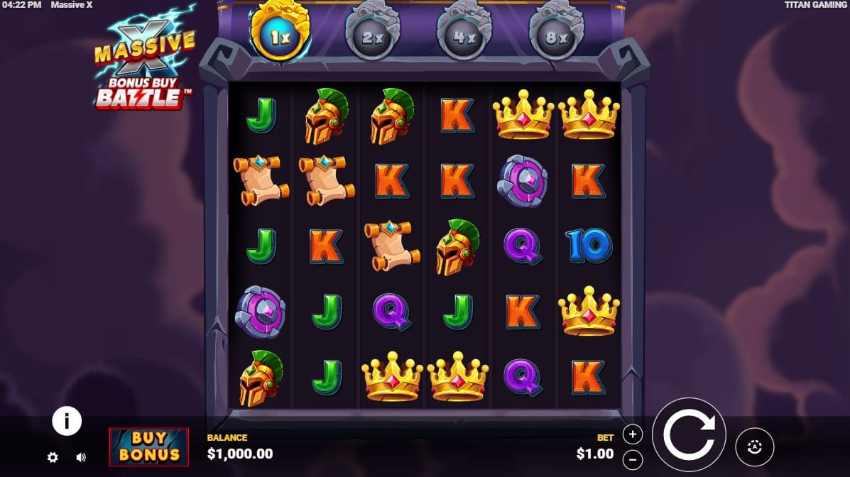 Massive X is a high-volatility slot developed by Titan Gaming and released on 27 September 2025. The game centers on a storm-themed adventure, featuring electrifying visuals and intense action across a 6×5 grid. It employs a Scatter Pays mechanic, where wins are formed by landing clusters of eight or more matching symbols anywhere on the reels, bypassing traditional paylines. Core gameplay revolves around tumbling reels, which remove winning symbols to let new ones drop in, enabling potential chains of consecutive wins. A key element is the persistent global multiplier, beginning at 1x and increasing by 1x with each successive tumble, applying to all payouts in that spin sequence. This creates dynamic, high-energy spins with a maximum win potential of 50,000x the stake. Massive X targets thrill-seekers who favor infrequent but substantial payouts, appealing to casual players desiring excitement as well as high-rollers chasing significant rewards in volatility-driven environments.