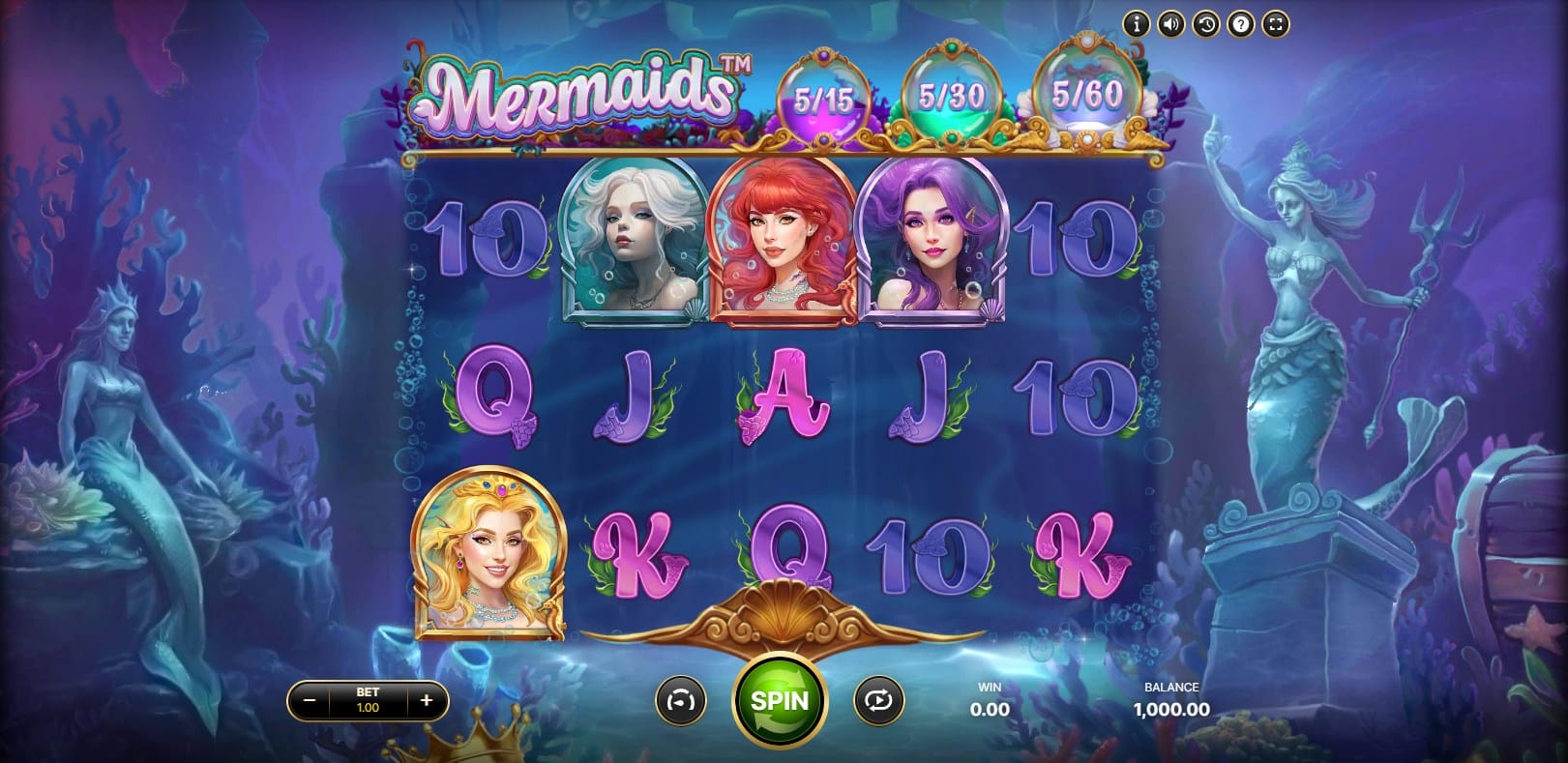 Animations are smooth and thematic: mermaid symbols come alive with fluid movements upon winning combinations, while particle bursts and subtle glows accompany wild appearances and feature triggers. The overall cohesion creates a whimsical, immersive sea kingdom feel, with high-quality rendering ensuring clarity across devices. This aesthetic prioritizes fantasy charm over hyper-realism, making it visually engaging for extended sessions without fatigue.