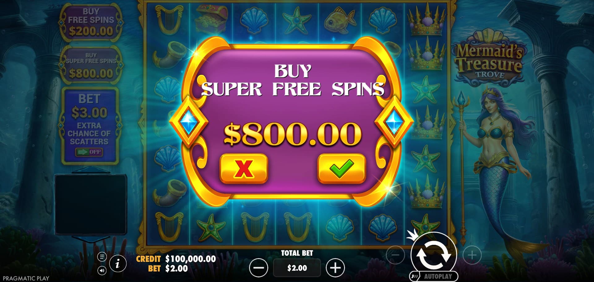 For players who prefer immediate action, Mermaid’s Treasure Trove offers two Feature Buy options: