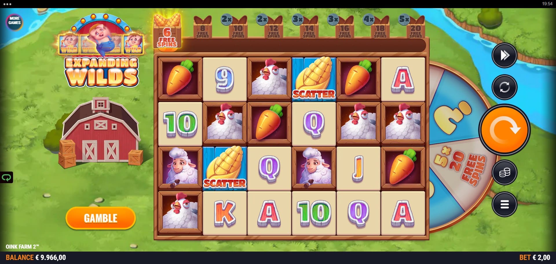 A gamble wheel determines the initial starting spins and multiplier.
