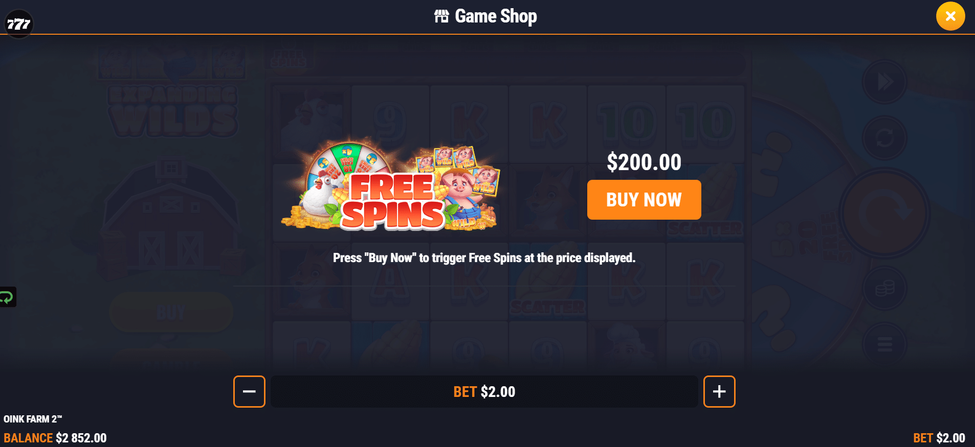 The visual upgrades over the original Oink Farm are notable. The expanded grid gives more breathing room to the artwork, while the animations—particularly the horizontally expanding wilds—add kinetic flair to the game. The free spins wheel is vibrant and clean, rotating smoothly and creating anticipation without visual clutter.