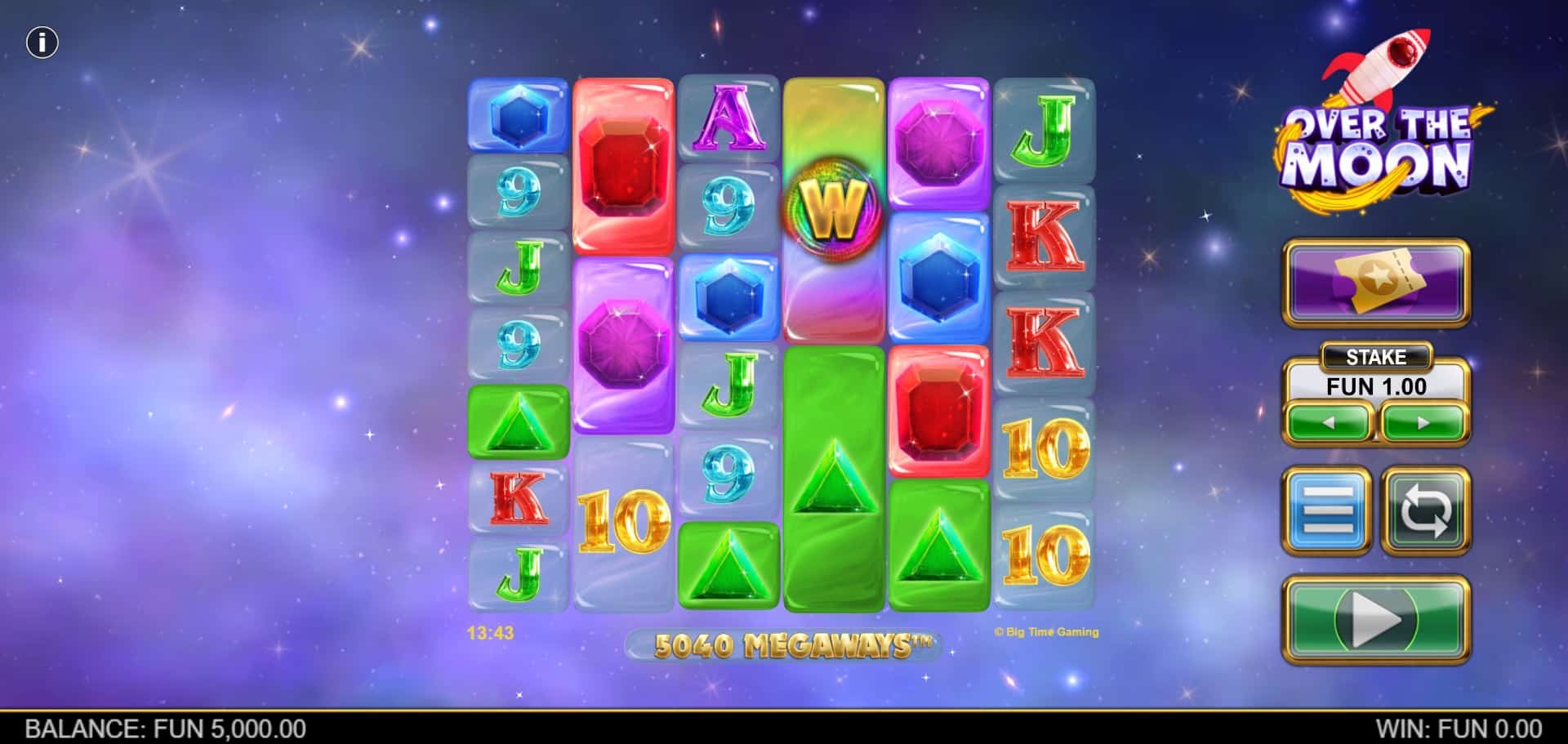 Released on April 26, 2023, Over the Moon is an inventive slot developed by Big Time Gaming, the studio renowned for pioneering the Megaways mechanic. The game transports players to a cosmic realm dominated by rockets, meteors, and escalating multipliers, blending high-stakes action with space-themed visuals. At its core, it employs a 6-reel Megaways engine that delivers up to 117,649 ways to win, setting it apart through its distinctive rocket and meteor prize system alongside progressive multipliers and engaging bonus features.