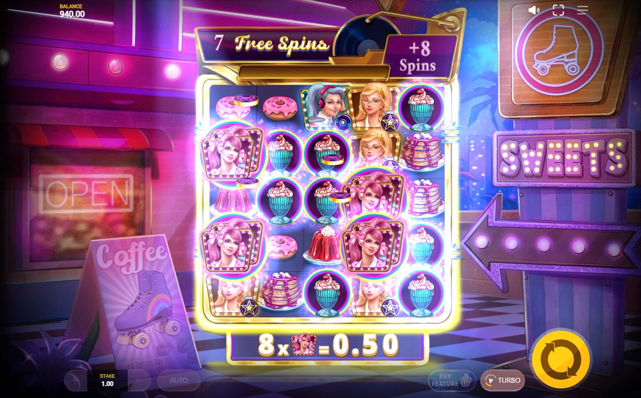 The soundscape of Peggy Sweets is upbeat, sugary, and a little flirty—much like the rest of the slot’s personality. The music sounds like it was lifted straight from a 1950s jukebox, and pairs well with the clinking of plates, hum of neon lights, and other subtle diner ambiance touches.