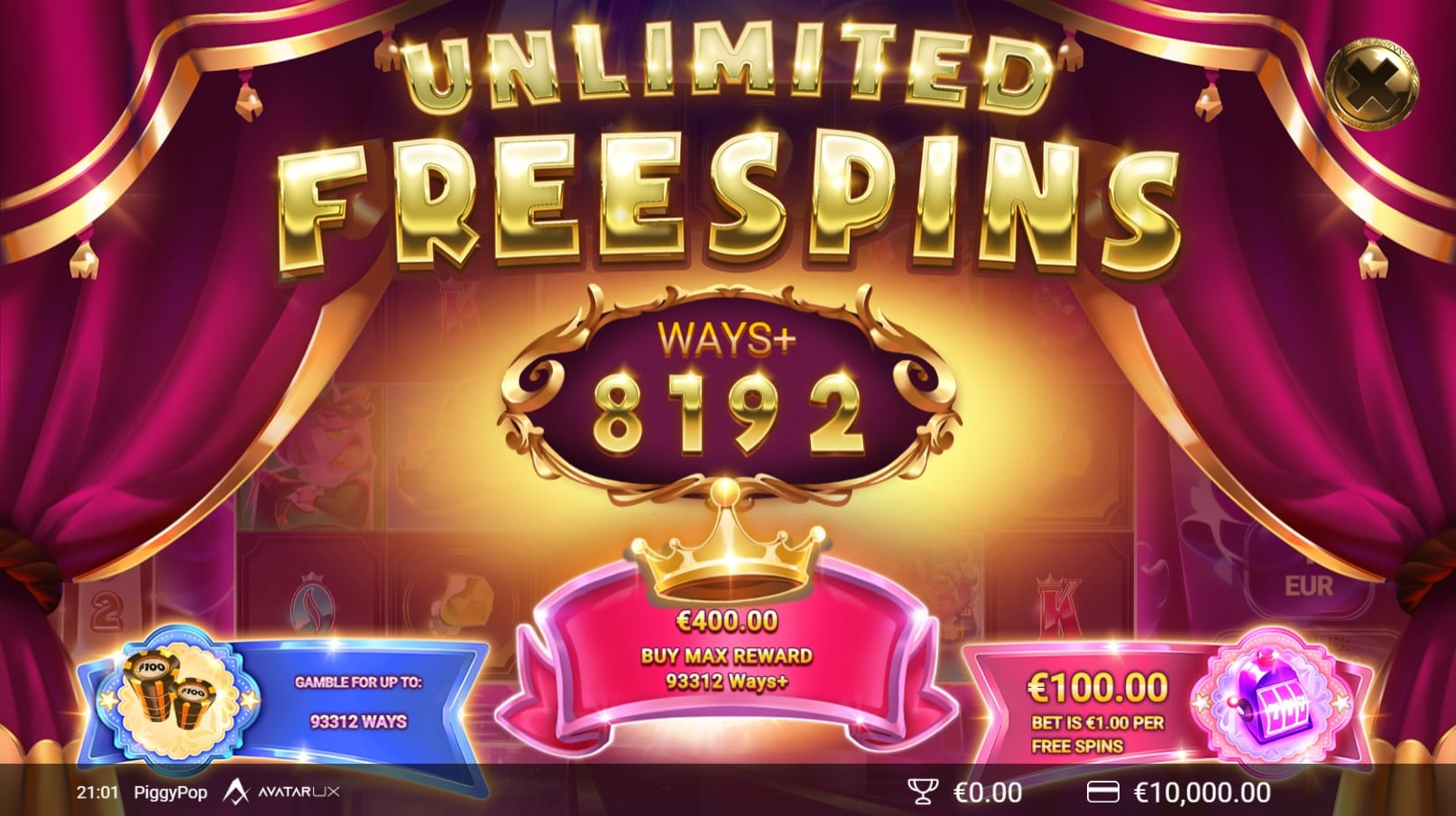 PiggyPop’s features may seem stripped down compared to other AvatarUX slots, but the PopWins mechanic, free spins, and golden pig multipliers combine for strong gameplay.