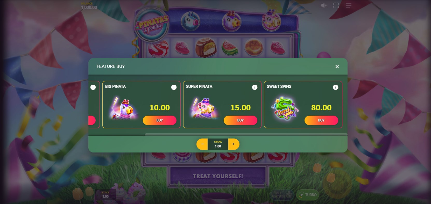Pinatas & Ponies includes a Buy Feature option for players in supported jurisdictions: