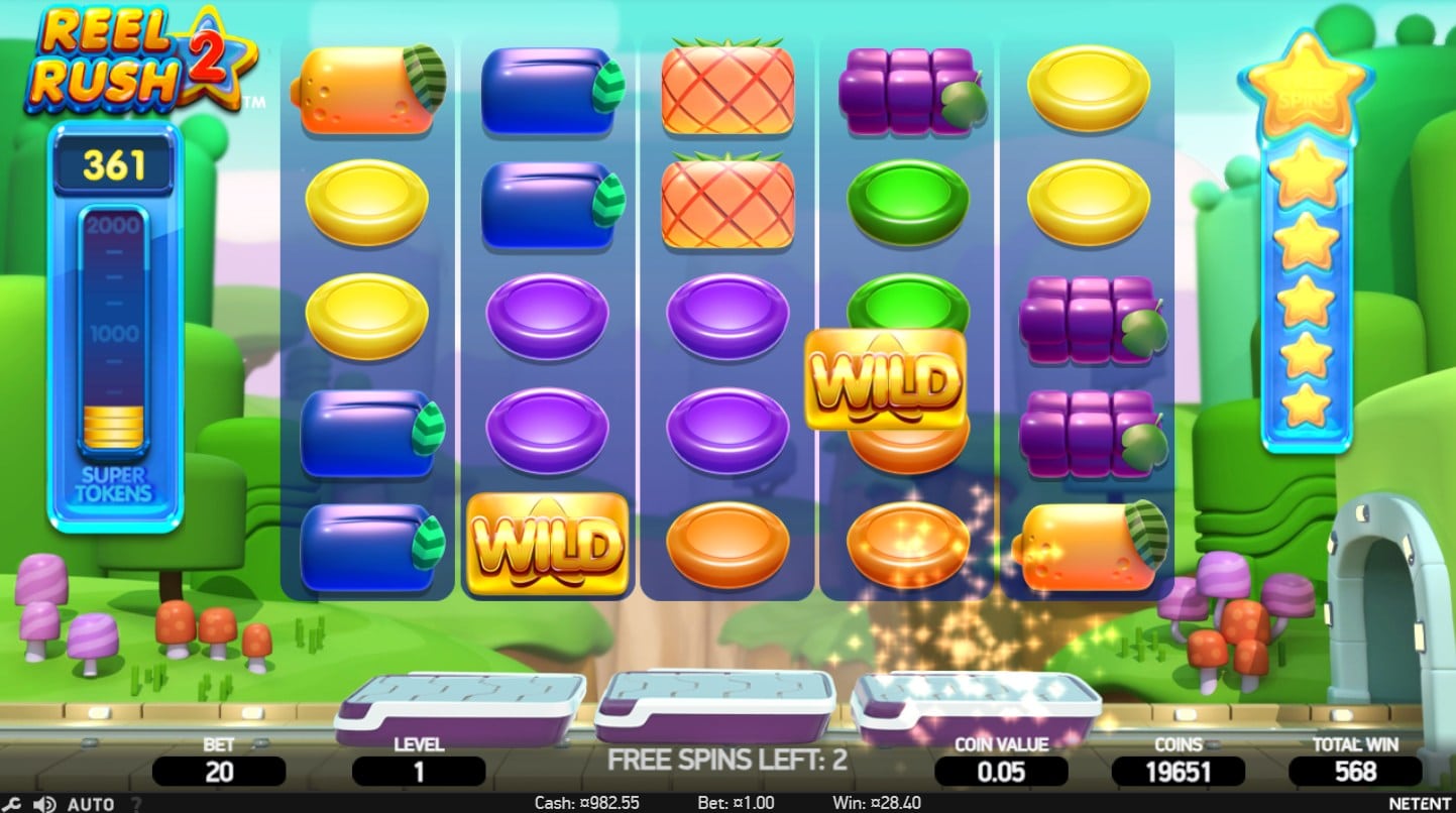 Reel Rush 2 is a sequel developed by NetEnt, featuring a vibrant candy-themed aesthetic centered around fruits and colorful candy blocks set in a pixelated countryside environment. This slot employs a distinctive expanding grid system on a 5-reel setup, starting with a 1-3-5-3-1 configuration that unlocks up to 3,125 ways to win through progressive expansions triggered by consecutive wins. The gameplay revolves around dynamic re-spins, random modifiers, and a token collection mechanic leading to enhanced free spins modes, delivering a fast-paced, feature-rich experience suitable for casual players and high-rollers alike who enjoy high-variety slots with medium volatility. The RTP ranges from 95.53% to 96.58% based on player choices in the free spins features, while the maximum win potential exceeds 6,000x the stake, appealing to those seeking substantial payout opportunities amid constant action.