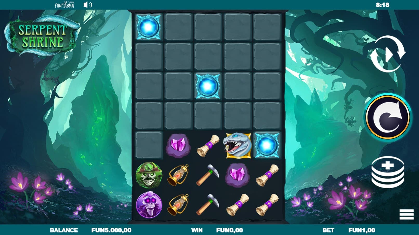 The soundscape of Serpent Shrine is atmospheric and haunting, perfectly matching its underground fantasy theme. Fantasma uses ambient cave echoes, shimmering magical tones, and suspenseful crescendos during feature activations. Subtle environmental noises—rustling leaves, dripping water, glowing insects—immerse the player in the hidden grotto.
