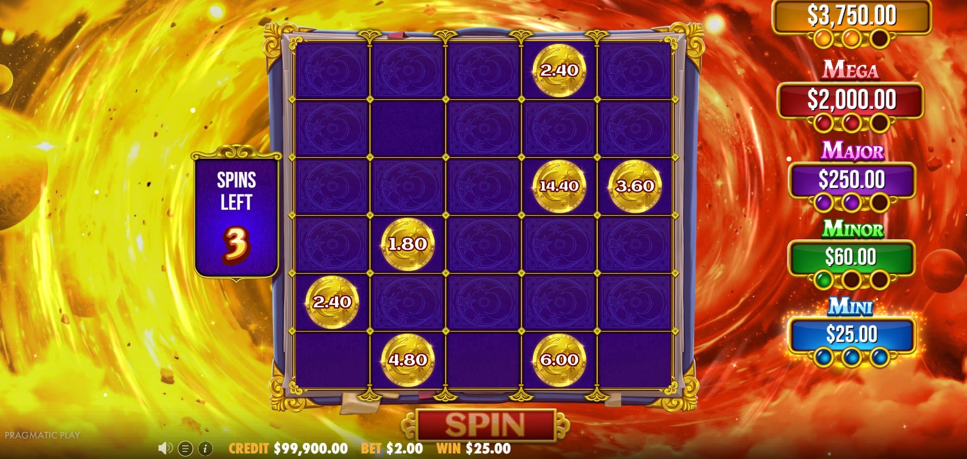 When active, every Blue Orb randomly boosts the value of a Money Symbol on the board by 0.3x to 25x per respin.