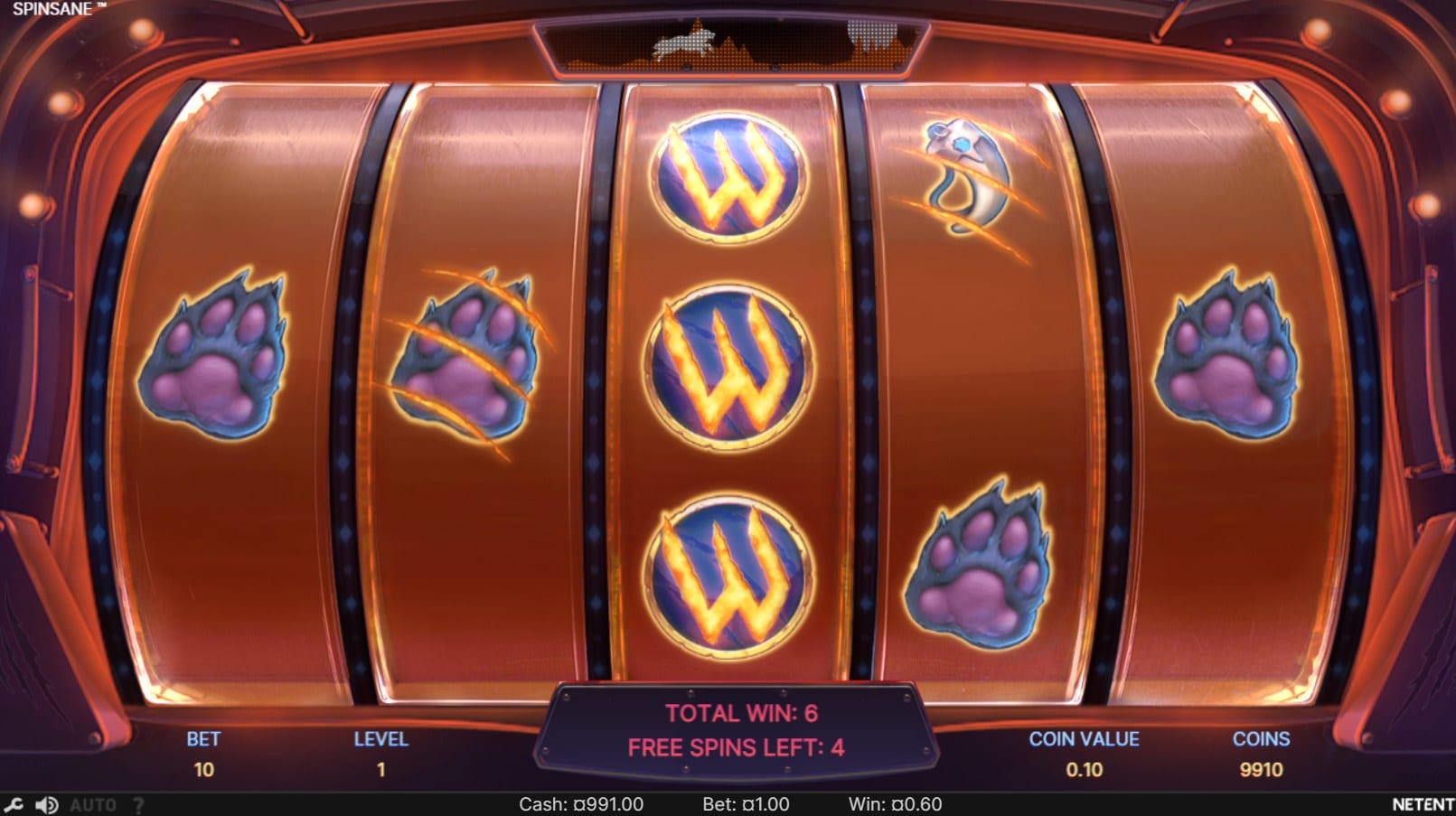 Spinsane operates on a 5-reel, 3-row setup with 27 fixed paylines, where winning combinations must align from left to right, starting on the first reel. Players adjust their stake via a simple interface, spinning the reels to land symbols such as low-paying paw prints, mid-tier claws, and premium wolf heads. The game’s distinguishing mechanic centers on Super Symbols, which serve as upgraded versions of standard symbols. These Super Symbols not only pay higher— for example, five Super Wolf heads can yield up to 500x the line bet compared to 50x for regulars—but also substitute for their regular counterparts to optimize wins across paylines.