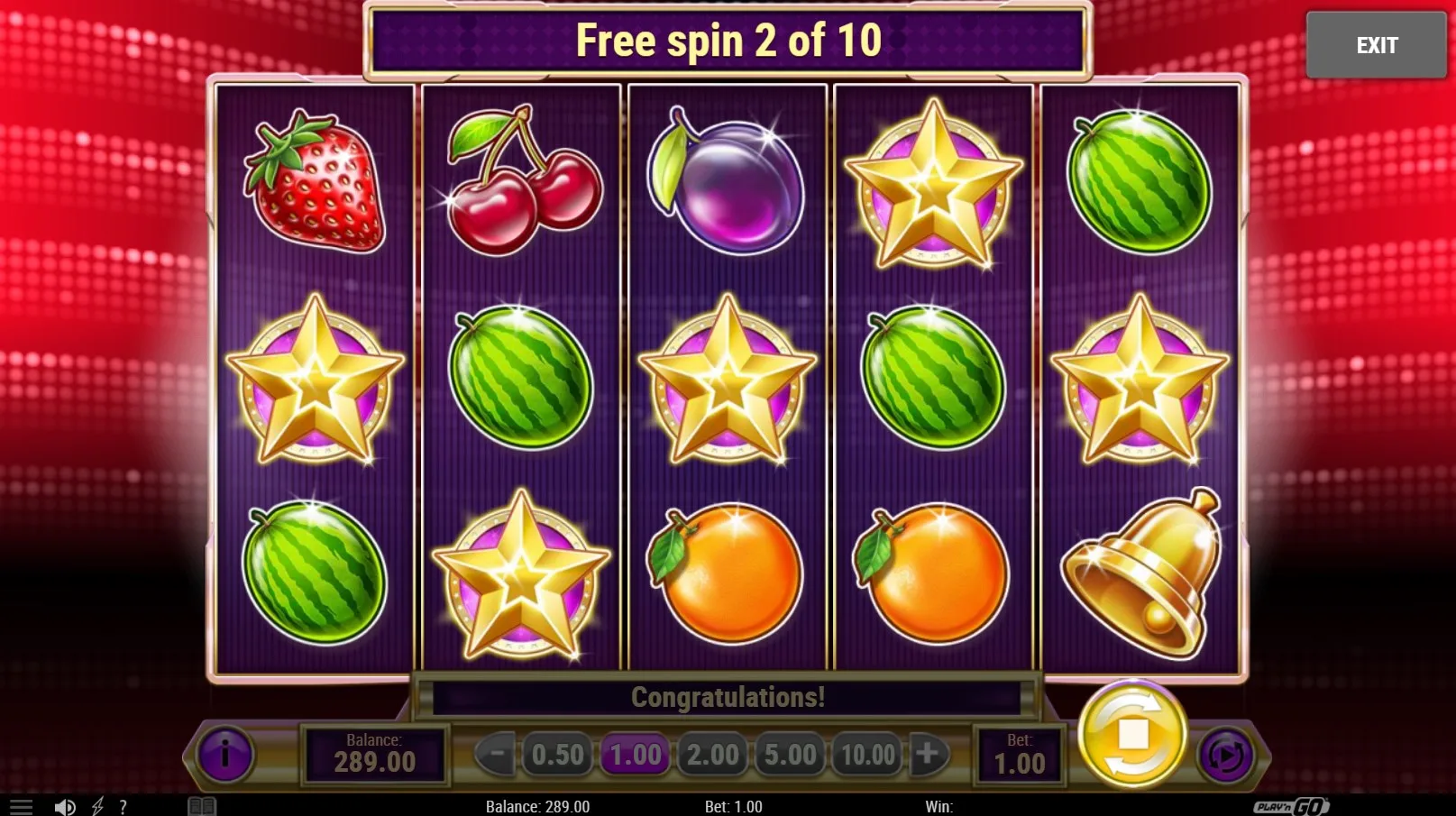 There’s also a Star Wild symbol that only appears during the free spins round. This symbol can substitute for any standard symbol and pays a whopping 500x your stake if you land five wilds during the bonus.