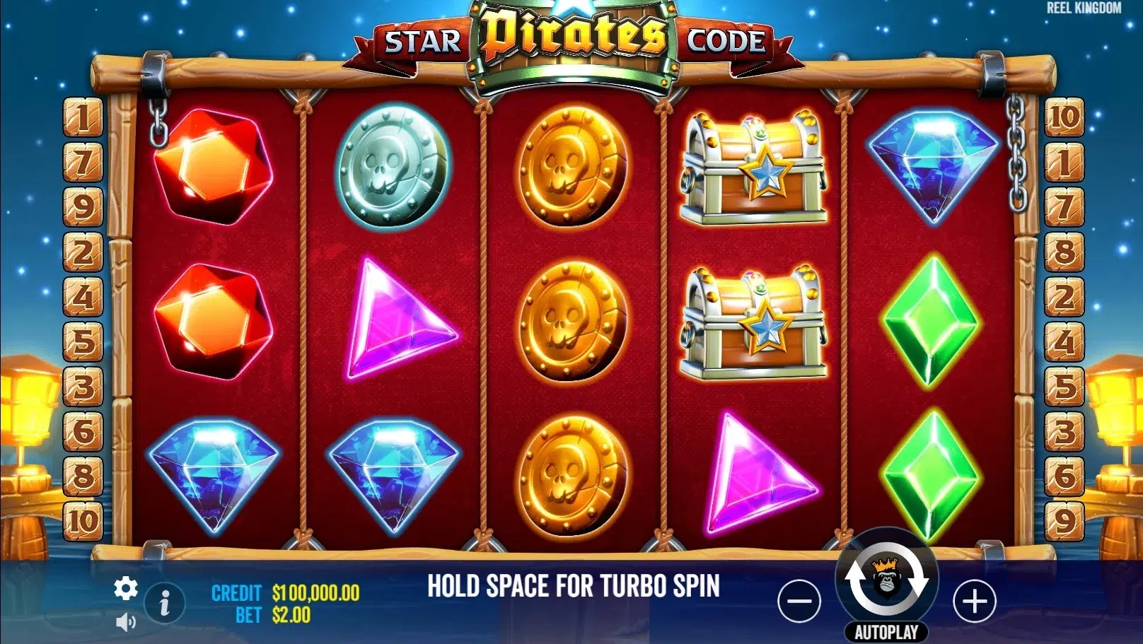 Released by Pragmatic Play in partnership with Reel Kingdom, Star Pirates Code merges an intriguing nautical and celestial theme, creating an unconventional gaming experience. With 5 reels, 3 rows, and 10 paylines, the slot invites players to embark on an adventure where treasures await amidst stars and ships. The game comes with a solid RTP of 96.74%, a medium volatility setting, and a maximum win potential of 2,500x the bet.