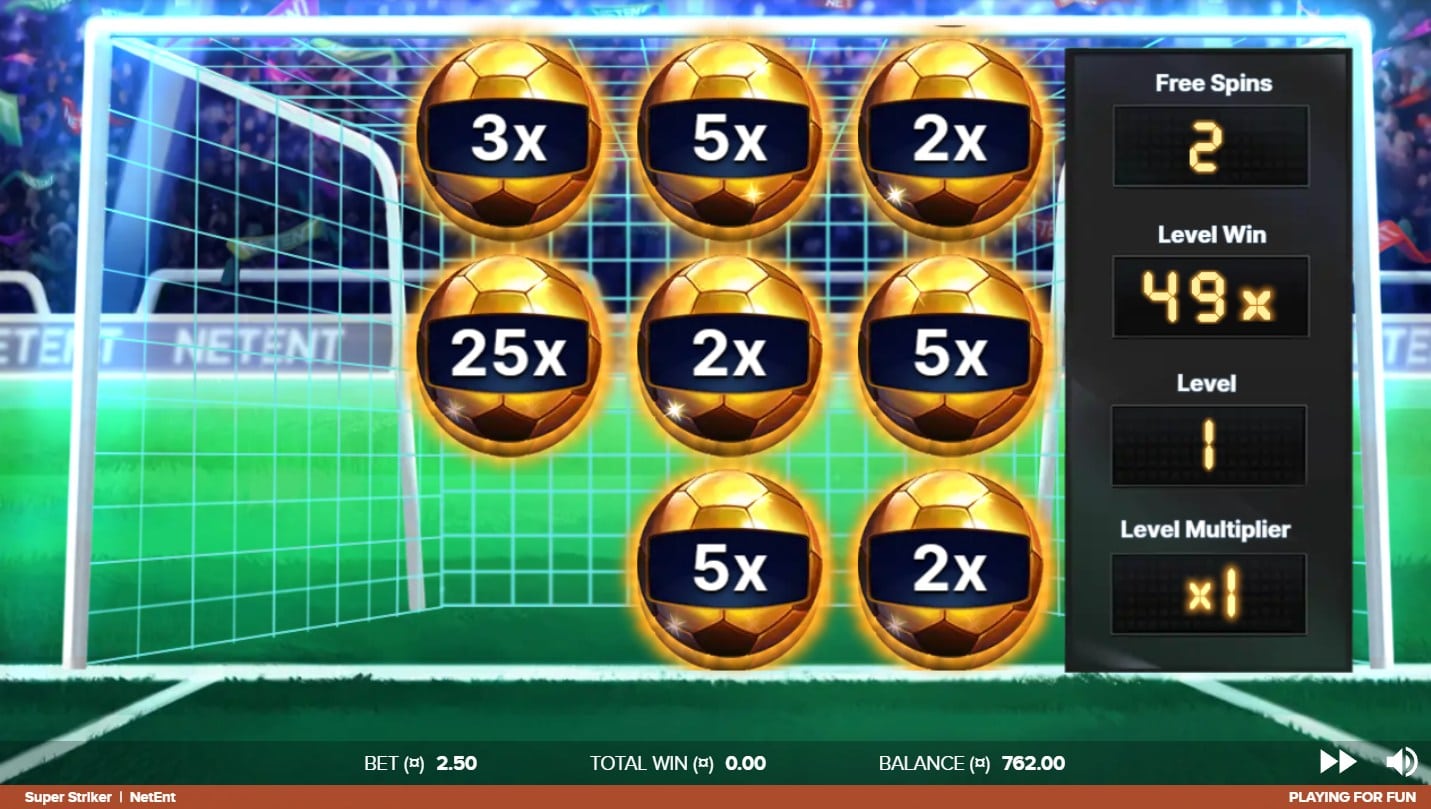NetEnt‘s Super Striker is a football-themed online slot that captures the excitement of the sport in a compact and fast-paced format. Released ahead of a major tournament season, it features a straightforward gameplay style centered on a 3×3 grid with 5 fixed paylines. The game appeals primarily to casual football enthusiasts, mobile-first players, and those who enjoy slots with accessible mechanics and bonus-driven action. It emphasizes simplicity in the base game while incorporating multipliers, scatters, and a unique side betting feature, making it suitable for both newcomers and experienced players seeking quick sessions infused with sports-themed energy. With a maximum win of 1,333x the stake and an RTP ranging from 96.04% to 96.93%, Super Striker balances moderate risk with potential rewards, particularly through its feature-rich bonus rounds.