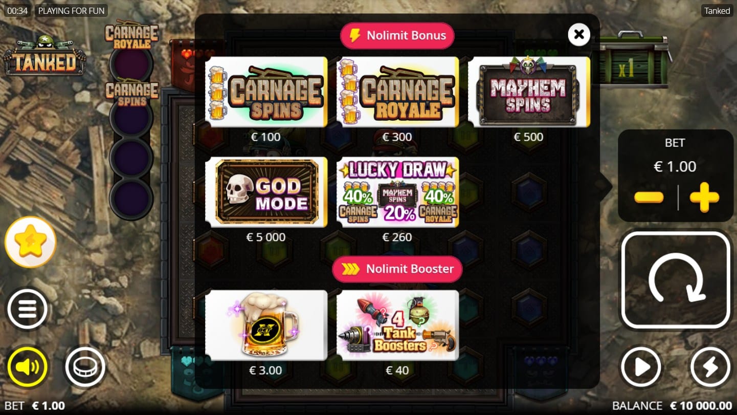 | Extra Bet (Boosters) | 40x | 4 random Tank Boosters |