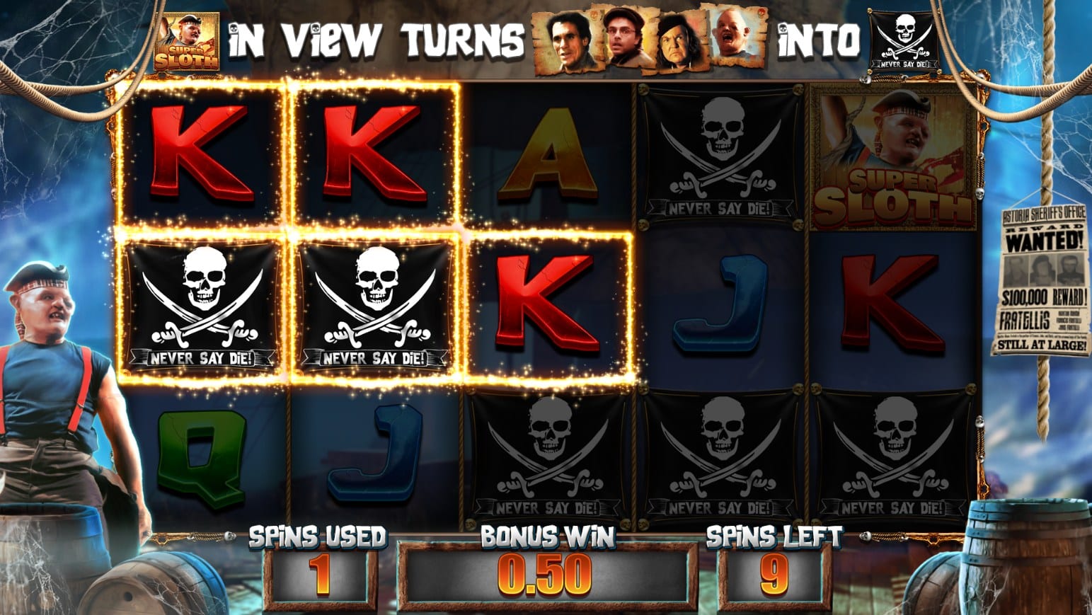 Sloth joins the adventure in this round. Any Sloth Wild landing turns all instances of his symbol into wilds, greatly increasing winning potential. After the spins, players pick from chests for retriggers, multipliers, or the One-Eyed Willy’s Treasure Bonus.