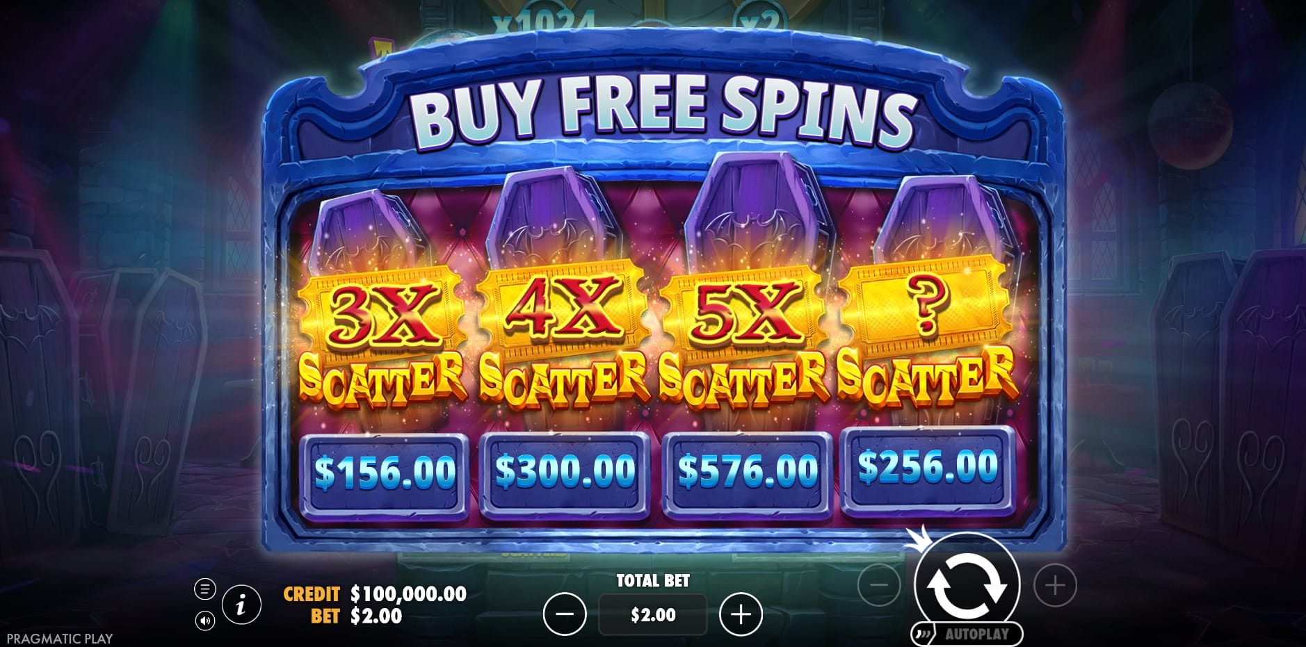 – 288x stake: Guarantees 5 scatters for x32.