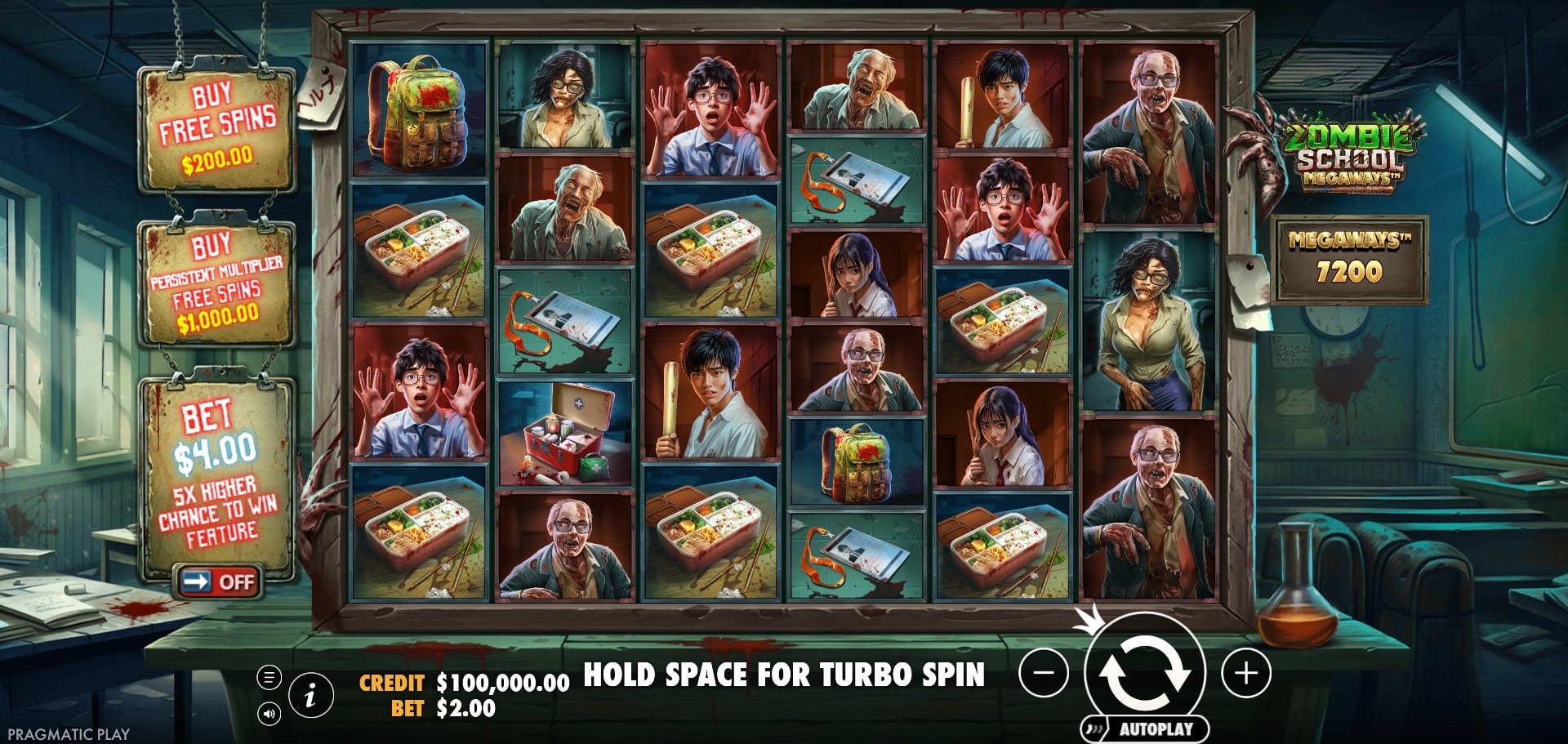 Pragmatic Play has never shied away from darker themes, and with Zombie School Megaways, the studio ventures into an atmospheric blend of horror, grit, and relentless tension. While many of the developer’s releases focus on light-hearted or adventurous motifs, this slot embraces the macabre—with decayed hallways, grim faces, and a looming sense of dread echoing through every spin. Set in what appears to be an Asian-inspired school overrun by the undead, the game marries the Megaways engine with a visual identity that immediately sets it apart.