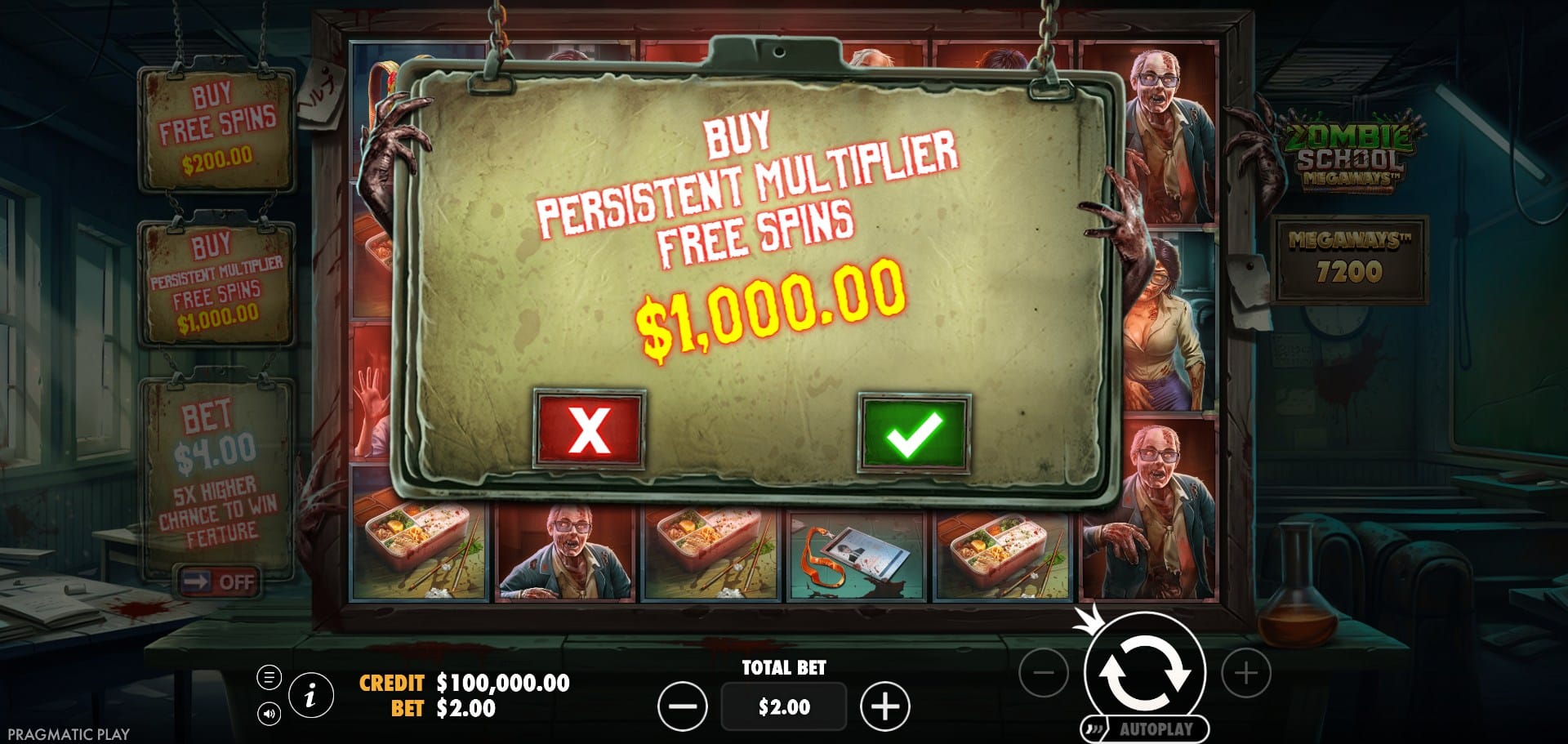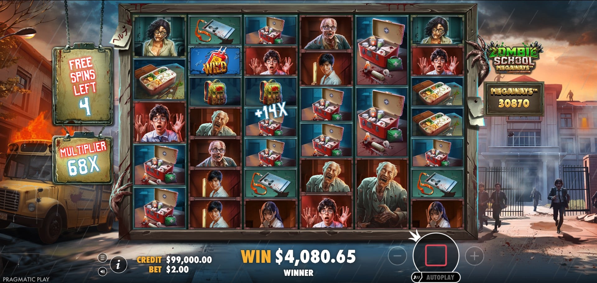Zombie School Megaways supports wagers from $0.20 to $240, catering to both casual players and high-stakes streamers.